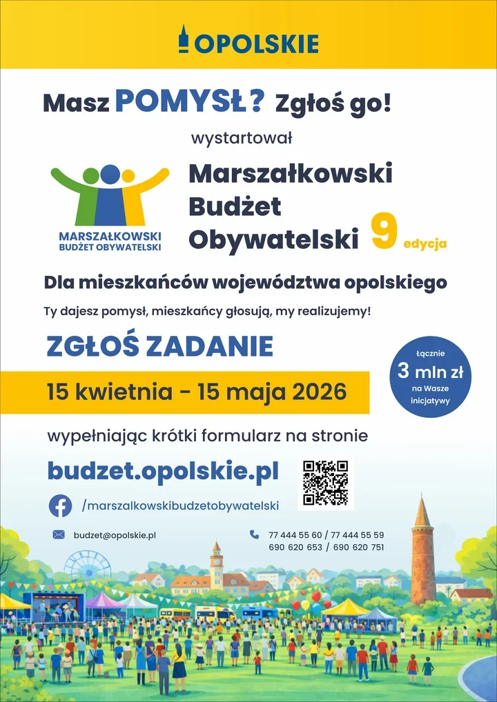 W Opolskiem znów otworzyło się miejsce dla inicjatyw, które na co dzień łatwo giną w szufladach i rozmowach sąsiedzkich. Do 15 maja mieszkańcy mogą zgłaszać projekty do 9. edycji Marszałkowskiego Budżetu Obywatelskiego Województwa Opolskiego. W puli jest 3 mln zł, a samo zgłoszenie ma być proste – wystarczy formularz online.